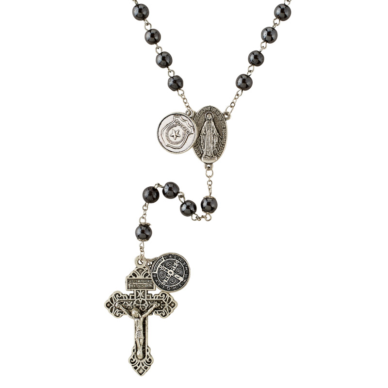 Our police officer rosary makes a perfect gift for those serving. Each rosary contains a pardon crucifix, St. Benedict medal and service emblem medal that includes an image of St. Michael the Archangel on the back. Trust in God and pray the Rosary for worldwide peace.