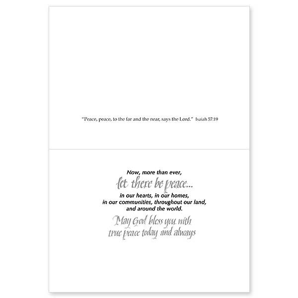 Verse inside: Now, more than ever, let there be peace… in our hearts, in our homes, in our communities, throughout our land, and around the world. May God bless you with true peace today and always.